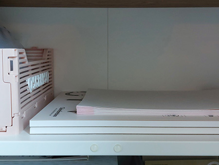 Toch duurde het niet lang of de volgende uitdaging stond al klaar. Ik had namelijk van te voren niet helemaal bedacht waar ik de A3 papierblokken zou laten. Ja, ik had wel een ladekastje in mijn hoofd.. maar die staat heel ergens anders. Gelukkig bleken ze toch wel in mijn papierkast te passen, maar een eventueel A2 papierblok zou er niet in kunnen. Al ben ik voorlopig wel tevreden met groter en hoef ik nog niet grootst.